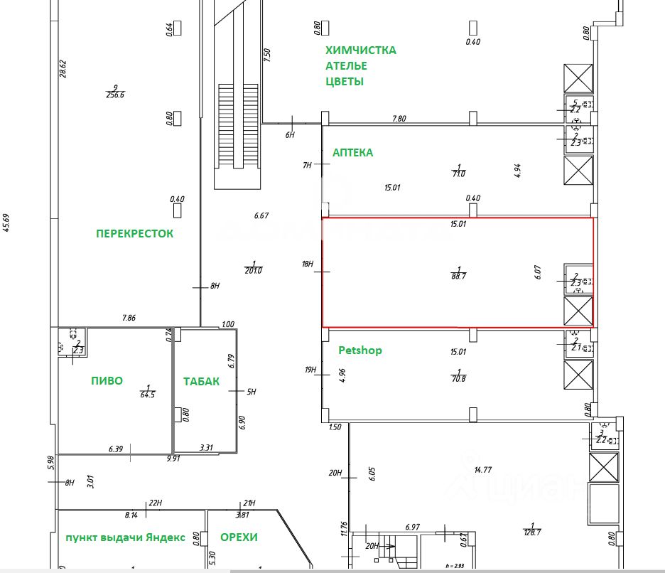 В аренду напрямую от собственника предлагается коммерческое помещение площадью 91м2 в ТЦ, расположенном в обжитом очень густонаселенном микрорайоне Чистое небо, в зоне супер-активного пешеходного трафика. В ТЦ давно работают: Магазин Перекрёсток 24/7, Улыбка радуги, Аптека, PetShop, все пункты выдачи, BeerAsia, Табачный магазин, Мир орехов и др. Помещение расположено прямо напротив входа в магазин Перекрёсток таким образом, что вдоль него проходит каждый покупатель Перекрёстка два раза: при входе в магазин и при выходе из него. Помещение расположено в цокольном этаже между аптекой и магазином зоо-товаров, имеет отдельный вход из торговой галереи и широкую витрину. У Ваших покупателей нет шансов пройти мимо Вас. Режим работы ТЦ 24/7. Помещение оборудовано собственной погрузочной зоной с подъемником с фасадной стороны здания. Планировка помещения открытая, правильной прямоугольной формы, внутри нет колонн и стен. Ремонт только что закончен: пол плитка, потолок грильято, светильники, ввод воды и канализации для оборудования отдельного с/у, стены оштукатурены и готовы под покраску, высота потолков 3,2м, электричество 25 кВт с возможностью увеличения. Буду рада ответить на Ваши вопросы. Пожалуйста, звоните.