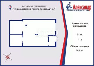 Номер объявления: 18322 - назовите его оператору. Вашему вниманию предлагается в аренду коммерческое помещение, площадью 105,6 кв. м. в жилом комплексе бизнес-класса ''Наука'' в Калининском районе рядом с двумя станциями метро -Академическая (10 минут пешком) и Политехническая (15 минут пешком). Прекрасный современный ансамбль разновысотных кирпичных зданий от 11 до 13 этажей с закрытой охраняемой территорией.В данном жилом комплексе запланировано более 2000 квартир. Комплекс находится в развитом жилом районе и уже заселен.Расположение предлагаемого помещения очень удачно, оно находится в ближайшем к метро корпусе, на пересечении проспекта Науки и ул. Академика Константинова. Станция метро Академическая на расстоянии около 1 км от данного корпуса. Помещение фасадное, проходное, имеет большие витринные окна, расположено на 1 этаже, вход с улицы, высота потолков 3,63 м. Рядом с помещением предусмотрена парковочная зона.Помещение отличной планировки, светлое, двустороннее, подойдет под любой вид деятельности. Подведены все необходимые коммуникации: централизованное отопление, электроснабжение, водоснабжение, вентиляция.Выделенная электрическая мощность 19 кВт.Помещение сдается на длительный срок.Звоните, оперативно организую просмотр.