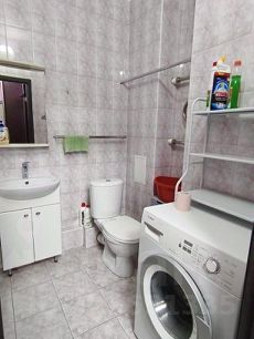 1701952 Сдается светлая и просторная квартира студия с лоджией 4 метра. Находится в новом доме, рассчитана для 1-2 человек, можно с небольшим животным. С ремонтом, есть стиральная машина, в коридоре стоит зеркальный шкаф. До города Санкт-Петербург 20 минут на автобусе, пробок нет. Звоните!Предоплата за 1 месяцЗалог 18 000 ₽