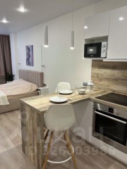 Сдается студия на 13 этаже современного монолитного дома 2025 года постройки. В квартире выполнен свежий евро ремонт, что создает уютную атмосферу. Просторная кухня оборудована необходимой техникой, включая холодильник и электрическую плиту. Из мебели — вместительный шкаф, двуспальный диван-кровать и стол. Если что то потребуется готовы докупить по факту. Ванная комната совмещенная, оснащена современной сантехникой, душевой кабиной и инверторной стиральной машиной на 8кг. Лоджия застеклена, что позволяет наслаждаться видом из окна. Дом оснащен пассажирским и грузовым лифтами, а также открытой парковкой во дворе.Квартира находится в районе с развитой инфраструктурой, рядом находятся магазины (КБ, Пятерочка, Магнит и тд), пункты приема заказов (Озон, Валберис), остановки общественного транспорта в 10-15 мин ходьбы. Интернет подключаете сами по своему усмотрению.К/У полностью на арендаторе.Курение и проживание с детьми или животными не допускается.Шумные работы или времяпровождения в квартире только в строго отведенное законом время.Договор аренды заключается только через Яндекс.Аренду 4493551051620711652 (номер объявления на сайте)Предоплата за 1 месяц