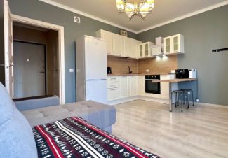 Сдается небольшая теплая и уютная квартира-студия. Квартира зонирована на кухню и комнату, в каждой зоне есть окно. Широкая лоджия - 2,6 кв м, высокие потолки, просторная прихожая. Хороший вид из окна на реку.В доме открыты магазины, аптеки, кафе, рядом с домом гипермаркет.Сдается только одному человеку на длительный срок, с пропиской в РФ.Сдаётся с 21 января 2026Предоплата за 1 месяцЗалог 20 000 ₽