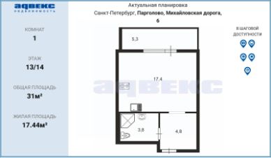 1-к, Орбели, 23 корп. 2 Показать на карте