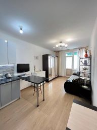 Сдается на длительный срок уютная современная студия на втором этаже нового дома.В наличии:- свежий ремонт- кухня с плитой, холодильником и чайником.стиральная машина.- в прихожей шкаф-купе, в комнате диван, барная стойка, стол и стулья- просторная лоджия.Рассмотрю вариант с животными и детьми. Без залога. От собственника. Оплата 33000+к.уПредоплата за 1 месяц