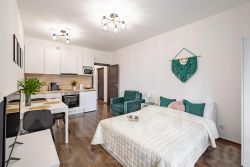 Сдается новая студия в современном ЖК.Просторное, светлое помещение с тремя окнами. Комплекс с закрытым зеленым двором без автомобилей. Предусмотрена парковка (включая возможность аренды подземного паркинга).Студия ранее не сдавалась, оборудована необходимой мебелью: шкаф, стол, кухонный гарнитур, двухместный диван.Удобное расположение: 10 минут пешком до остановки общественного транспорта, 20 минут до станций метро ''Комендантский проспект'', ''Старая Деревня'', ''Пионерская''.Предоплата за 1 месяц