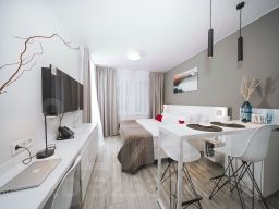 Просторная студия уровня 4 звезды на длительный срок.Апарт-отель с удобной локацией — 2 минуты до станции метро Бухарестская (фиолетовая ветка), 30 минут до аэропорта, 20 минут до центра Санкт-Петербурга.Минималистичный, светлый дизайн с небольшими яркими, красными акцентами.Апартаменты оснащены всем самым необходимым:- На кухне есть кухонный гарнитур, холодильник, плита для приготовления пищи, микроволновая печь, чайник, кухонная посуда и аксессуары, столовые приборы- В зоне релакса есть кабельное телевидение, интернет, кондиционер, электронные замки, фен, зеркало, вешалки, шкаф для одежды, сейф.- В ванной комнате установлена сантехника высокого европейского качества и полноценная ванна. Также в номере есть стиральная машина, сушилка для белья, утюг и гладильная доска.- На территории комплекса есть вся необходимая инфраструктура: магазины, аптека, фитнес-зал, салон красоты, барбершоп, кондитерская, несколько ресторанов, пиццерия, сервисы доставки еды.- Собственный 25-метровый бассейн с 4 дорожками!Дополнительно за отдельную плату могут быть предоставлены:- Заказ еды в номер.- Консьерж-служба.- Завтраки по системе шведский стол.- Подземный паркинг.Возможно проживание с питомцами за дополнительную плату.Обязательные платежи, интернет и телевидение оплачиваются отдельно.Стоимость аренды зависит от срока. Актуальность цен и наличие свободных номеров на вашу дату уточняйте при бронировании!С 1 января вводится оплата обязательной финальной уборки. Оплата производится на заезде и рассчитывается от площади апартамента.VALO Ramada Комфорт.Номер предложения: 1310924700.Залог 44 000 ₽