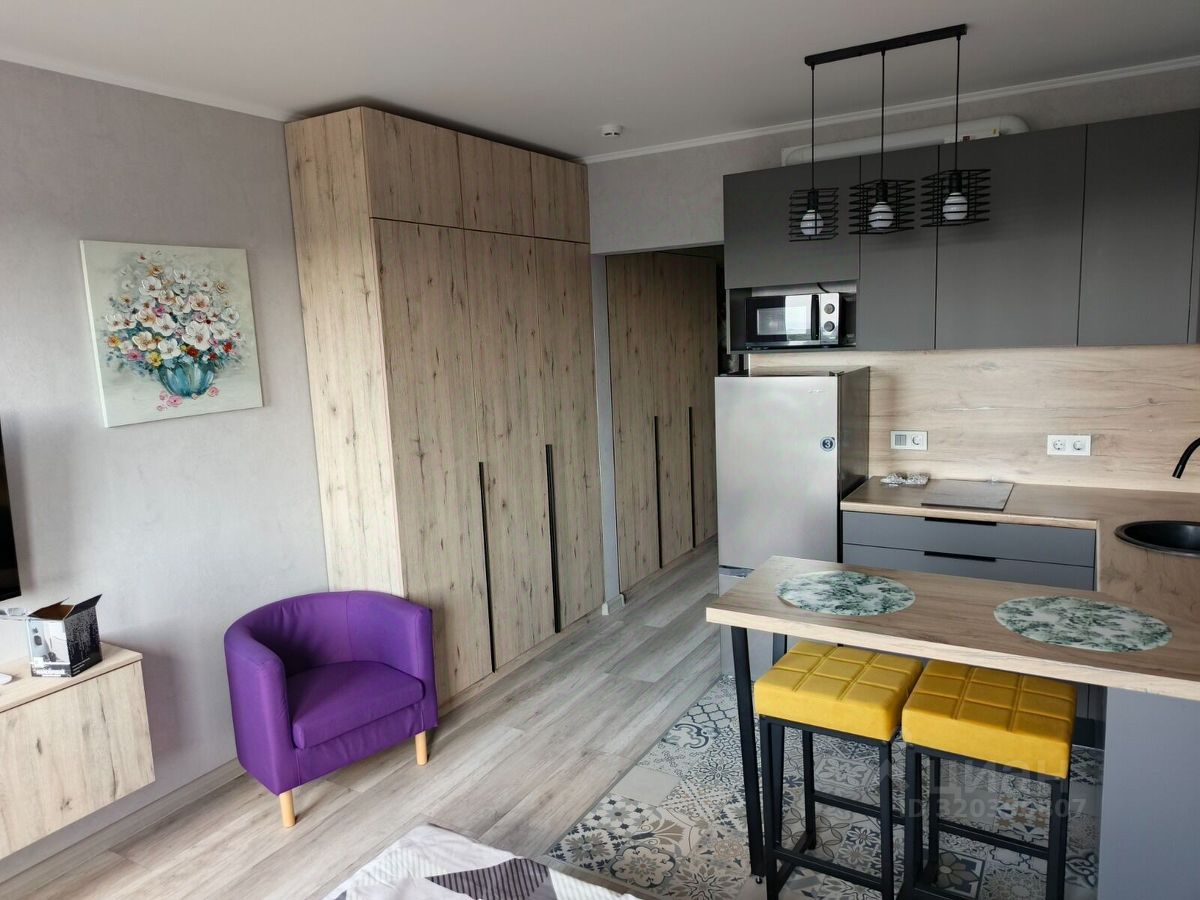 Уютная солнечная студия после ремонта, никто не жил, новая кухня с техникой (холодильник, варочная панель, духовка, вытяжка, микроволновая печь, чайник). Новый диван и телевизор. В ванной установлена новая душевая кабина, также в ванной имеется стиральная машина. Окна выходят во двор, тишина гарантирована. На лоджии уложен кварцвинил. Остановка общественного транспорта с другой стороны дома. Сдается от собственника на длительный срок.