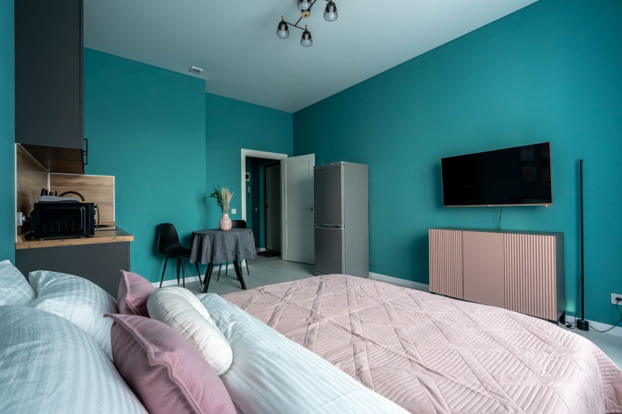 Стильная квартира студия сдается на срок до конца мая, на более долгий срок возможно обсудить индивидуально. Квартира оборудована кухонной зоной с варочной панелью, микроволновой печью, холодильником. Есть вся необходимая посуда. Есть смарт телевизор, wifi. В санузле стиральная машина.