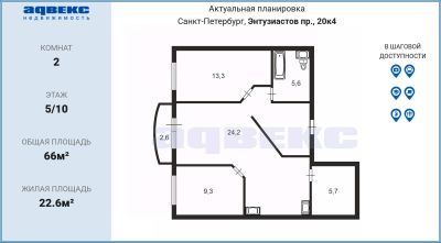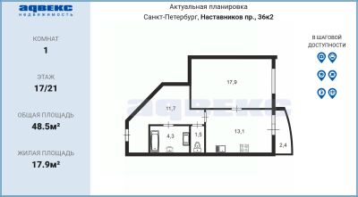 1-к, Коммуны, 30 корп. 1 Показать на карте