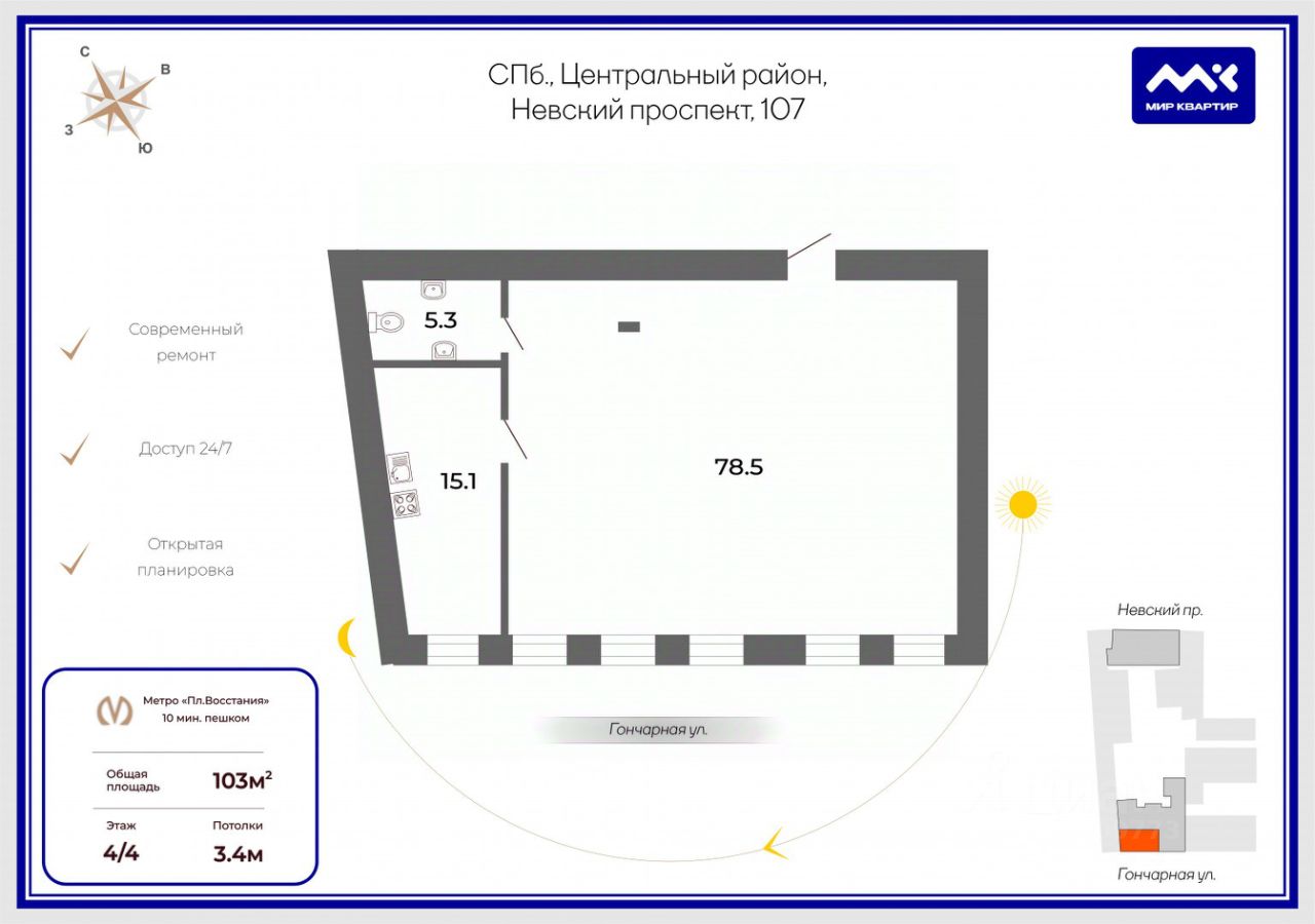 Арт. 105568694 Офис А+ с панорамными окнами в новом клубном доме Upoint.Адрес: Шоссе Революции 3к2, напротив БЦ Бенуа.Помещение с отдельным входом под любые сферы бизнеса.Офис готов к заезду арендатора.Рядом бизнес-центры и жилые дома, напротив помещения парковка для клиентов с заездом под шлагбаум и есть платная парковка в подземном паркинге.В соседнем помещении кофейня.О помещении:Площадь: 100 м2.Высота потолков: 3,1 м.1 этаж.Окна в пол.Электрическая мощность: 25 кВтОфис уже оснащён:Системой противопожарной защиты.Приточно-вытяжной вентиляцией и кондиционированием.Системой контроля доступа Hikvision.Фильтрами для очистки питьевой воды.В стоимость аренды включен интернет 200 Мбит/с.О здании:- Парковочные места на территории и в подземном паркинге.Круглосуточная служба охраны с обходом помещений.Управляющая компания следит за порядком и благоустройством.