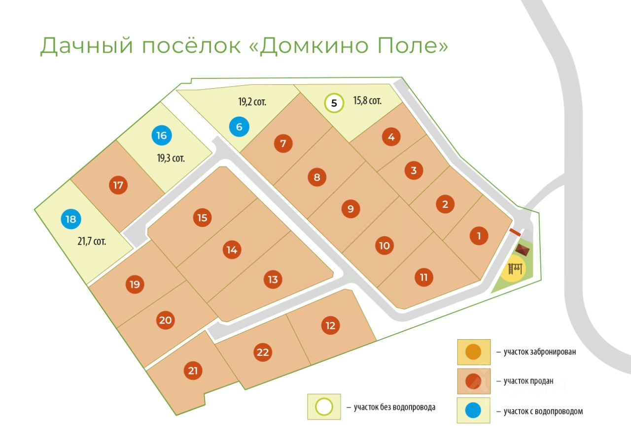 Данное предложение - 395 000 рублей - для участка 5 на план-схеме!!! Оставшиеся участки 6, 9, 16, 18 и19 обеспечены централизованным водоснабжением!!!