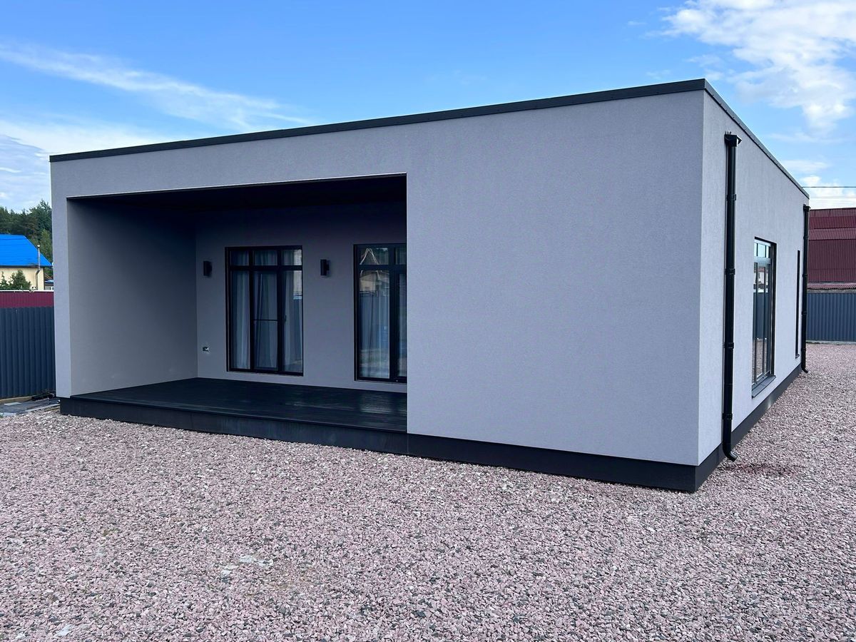 ИЖС!!! Одноэтажный дом с плоской кровлей со своими парковочными местами, верандой по цене двухкомнатной квартиры в СПб!!!Дом зарегистрирован, находится в 10 км по Мурманскому ш. от Мега Дыбенко в деревне Озерки Всеволожского района.Статус земли ИЖС. 8 соток.На участке снят плодородный слой до песка,уложен геотекстиль,отсыпан карьерным песком,после снова геотекстиль и щебень фракции 20/40,сделана подготовка под укладку тротуарной плитки. в конце участка оставлена полоса плодородного слоя для игр в садовода. Установлен столб с электрощитом 15 кВт на территории участка, своя скважина, газ магистральный.Участок огорожен забором с откатными воротами и калиткой. Дом построен в 2020 г.,есть проект, площадь 140 м2.