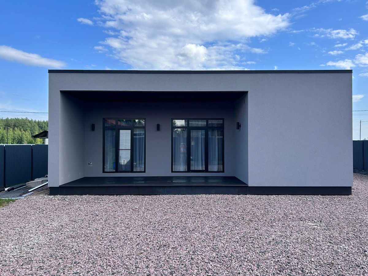 ИЖС!!! Одноэтажный дом с плоской кровлей со своими парковочными местами, верандой по цене двухкомнатной квартиры в СПб!!!Дом зарегистрирован, находится в 10 км по Мурманскому ш. от Мега Дыбенко в деревне Озерки Всеволожского района.Статус земли ИЖС. 8 соток.На участке снят плодородный слой до песка,уложен геотекстиль,отсыпан карьерным песком,после снова геотекстиль и щебень фракции 20/40,сделана подготовка под укладку тротуарной плитки. в конце участка оставлена полоса плодородного слоя для игр в садовода. Установлен столб с электрощитом 15 кВт на территории участка, своя скважина, газ магистральный.Участок огорожен забором с откатными воротами и калиткой. Дом построен в 2020 г.,есть проект, площадь 140 м2.Материалы: фундамент ж/б плита 30 см,стены из теплого газобетона Д400 мм аэрок, межкомнатные стены из газобетона 200 мм. Высота потолков 3м. Дом с плоской кровлей, перекрытия Марко, кровля гидроизолирована и утеплена, не потребует вмешательств 50 лет,все работы на гарантии. Стеклопакеты-аллюминиевый профиль S70,немецкая фурнитура,чёрные матовые.как показали две зимы в доме очень тепло.Установлена мощная система кондиционирования с щелевыми дифузорами на потолках, работающая также на обогрев. В техническом помещении газовый и электрический котлы, система очистки воды, накопительный бойлер на 300 л., вывод под стир машину и место для системы хранения. Отопление: водяной тёплый пол. Отделка:сделаны теневые плинтуса чёрного цвета на полу, на потолке теневой зазор,освещение-магнитые шинопроводы и точечные светильники. Дом полностью готов к проживанию.В деревне есть два прекрасных озёра с песочным пляжом-300 м от дома, детская площадка. , волейбольная площадка у пляжа и спорт городок через участок, рядом остановка общественного транспорта до м. Ладожская или Дыбенко,в пешей доступности продуктовый магазин.Также недалеко до горнолыжного склона Лазурные озёра. Есть фото всех этапов строительства. Дом строил для себя, цель продажи-переезд. Один взрослый собственник. Продаю сам, агентов и агенств просьба не беспокоить.