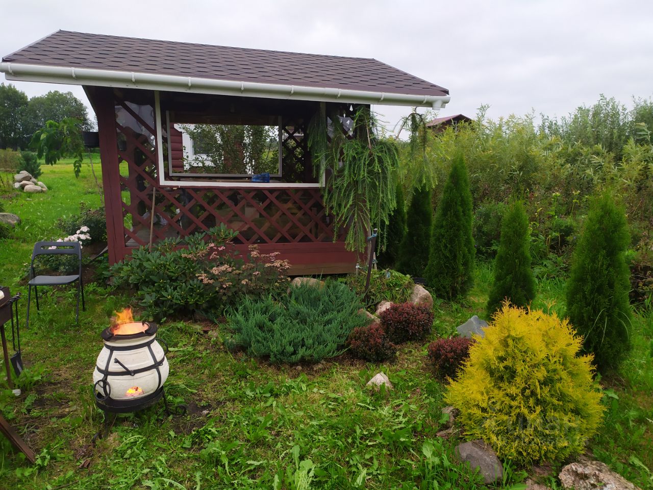 Беседка, пергола, 2 теплицы (огурцы+перцы и помидоры) с пленкой Светлица (невероятно прочная и долговечная). Мангал, тандыр, в процессе постройки - уличная русская печь. Детская площадка.