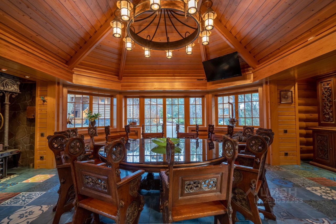 ИНФРАСТРУКТУРА ПОМЕСТЬЯ: - особняк площадью 670 кв.м, 3 этажа, - гостевой дом, включающий банный комплекс (250 кв.м), - отдельный зал для банкетов и кухня, оснащенная профессиональным ресторанным оборудованием, - дом для персонала, - дом охраны, - гараж для легковых автомобилей и техники, - хозпостройки, - огородный участок.