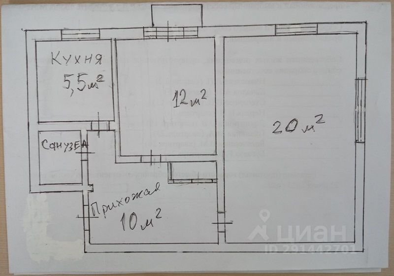 Общая площадь 50,9 кв.м, комнаты: 20+12 кв.