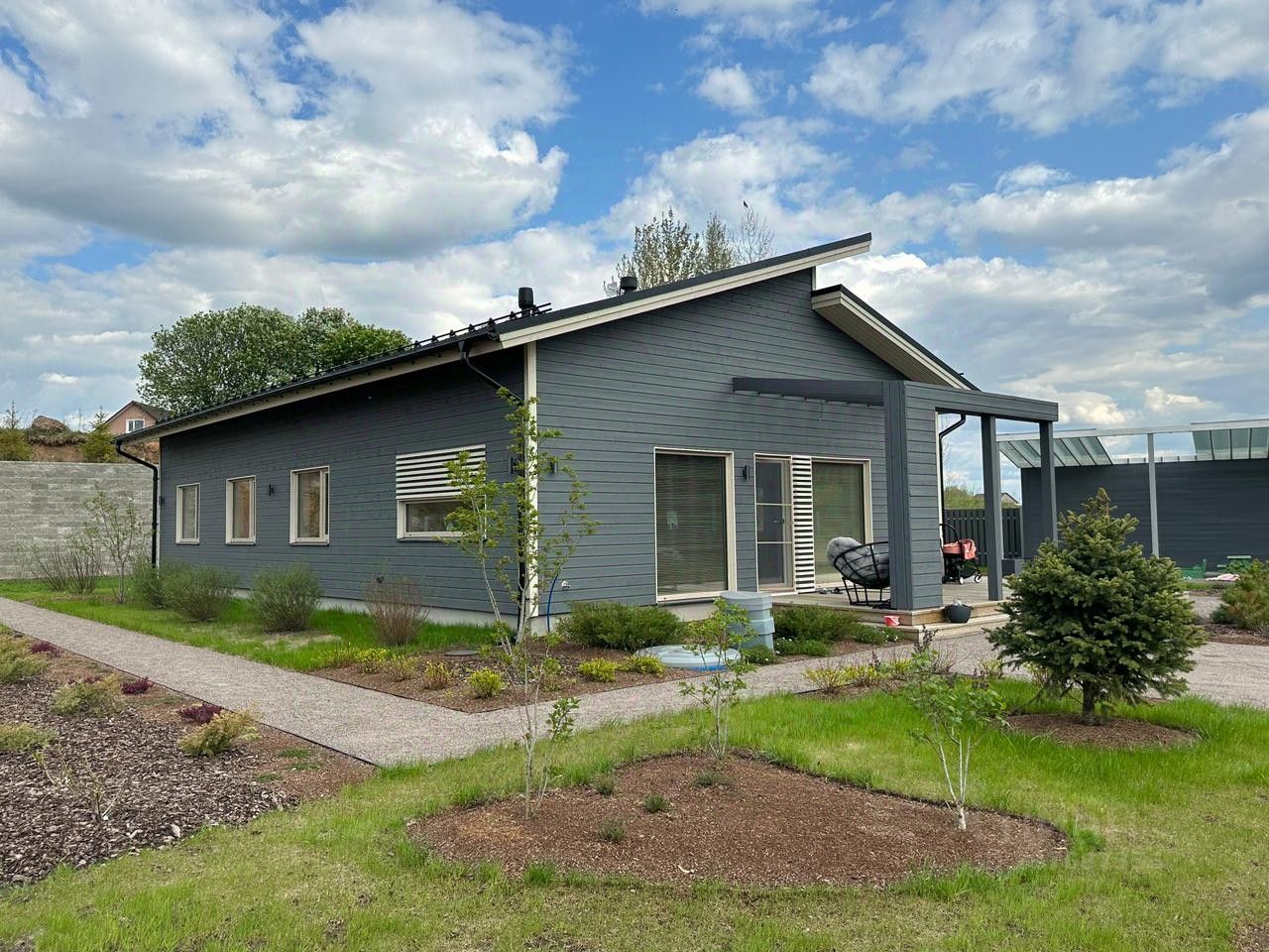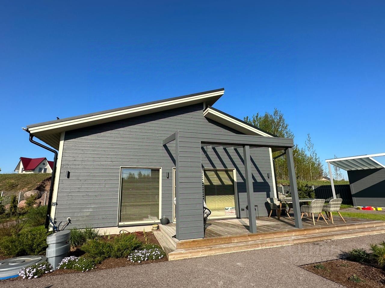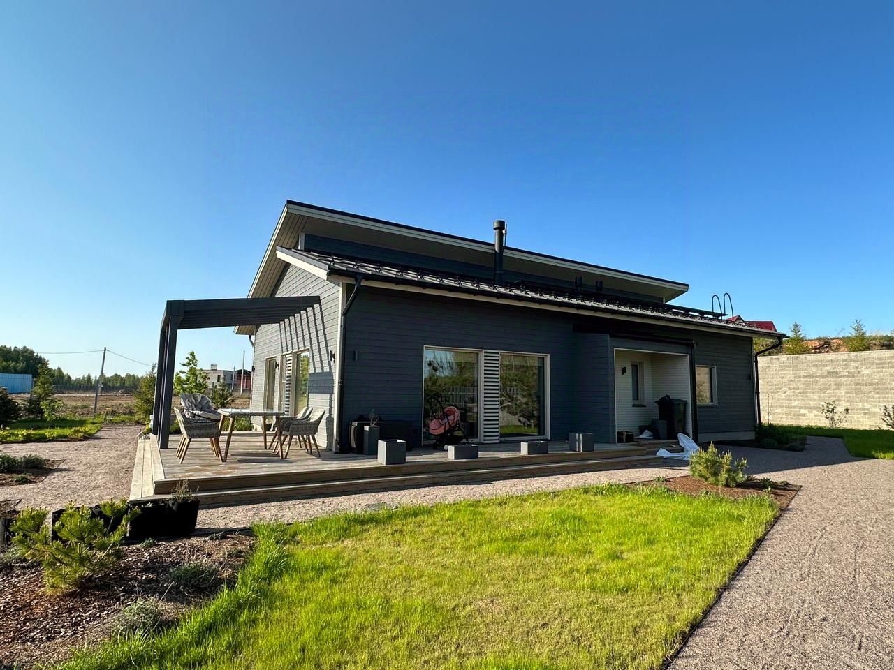 Продажа современного дома. Гатчинский район, деревня Химози (по факту Гатчина), Немецкая слобода. Построен строительной компанией Goodvill. Год постройки - 2021 года. Общая площадь дома 155 метров, площадь земельного участка 15 соток. Эргономичная планировка: кухня гостиная 42 метра, кабинет 20 метров, спальня 10 метров, детская 13 метров, прихожая 6 метров, холл 12 метров, гардеробная 3 метра, ванная 4,2 метра, котельная 3,7 метра. Дом продаётся полностью укомплектованный мебелью и техникой.