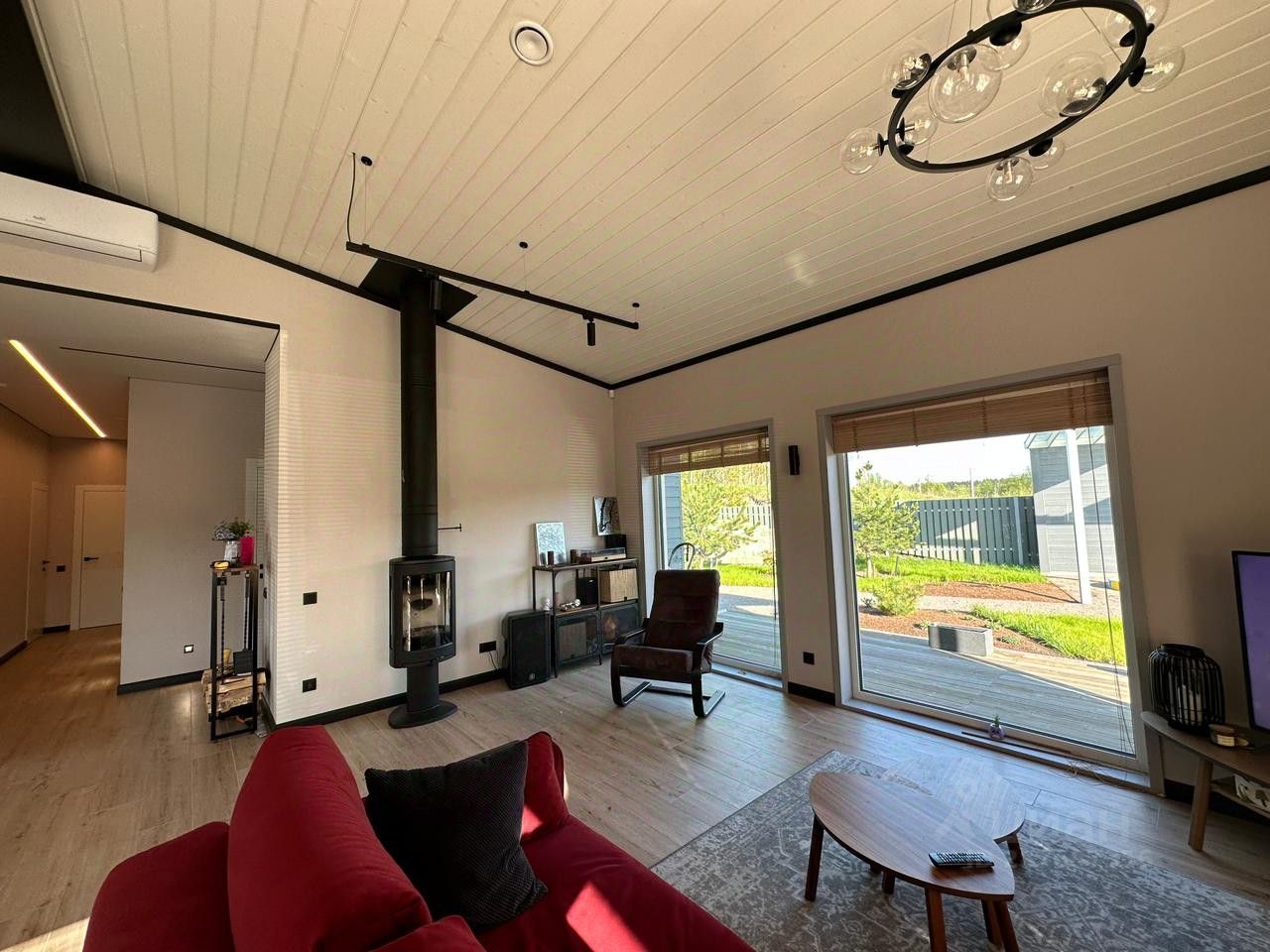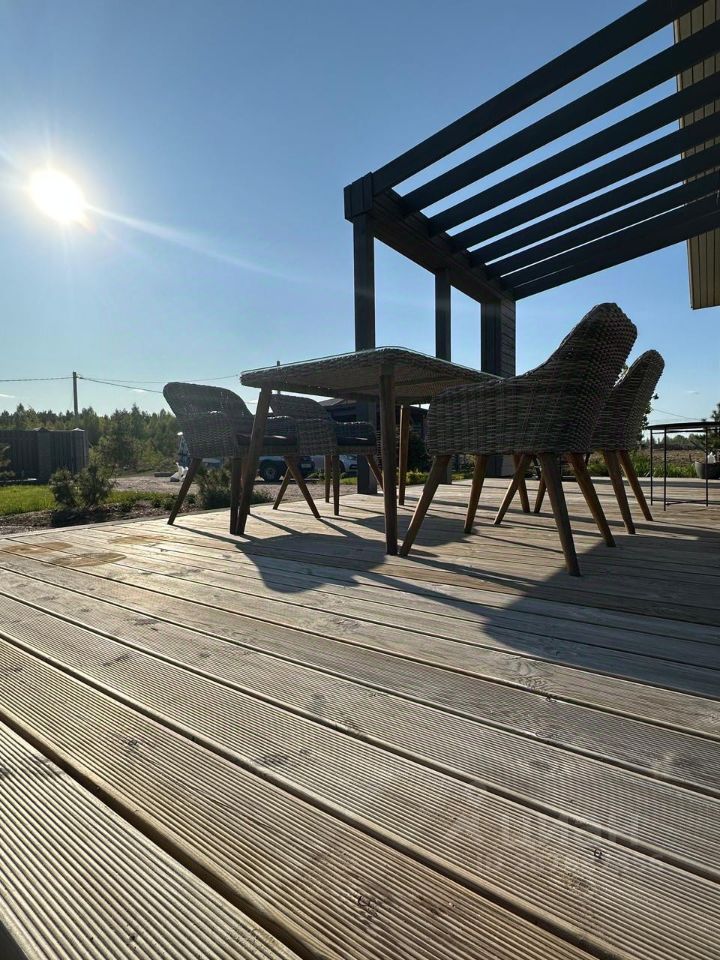 При строительстве дома использовались только современные скандинавские технологии. Материал стен - каркасный из сухой древесины, фундамент УШП. Отопление тёплыми полами. Котёл ПроТэрм, разводка в металлических трубах. Отопление управляется со смартфона. Электричество 15 кВт. Отличные показатели энергоэффективности, проведены испытания тепловизором и аэродверью. Есть отчёт.Вентиляция с рекуперацией. Установка VALLOX. Система очистки воды ЭкоДар.Охранная система, пожарные датчики. Датская печь-камин Jotul. Кондиционер Ballu.
