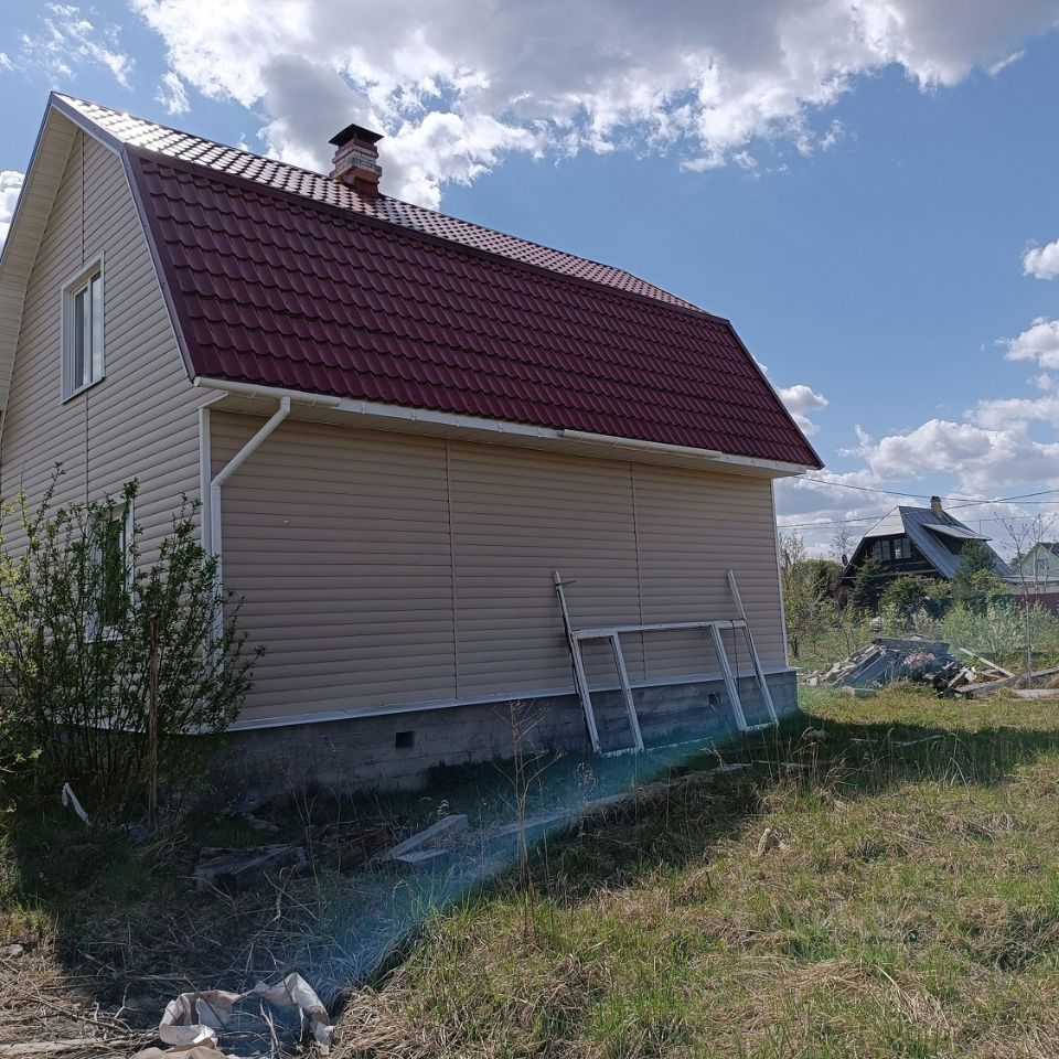 Дом стоит на ленточном фундаменте, бревенчатый с мансардным этажом. В хорошем месте. Обшит сайдингом. Крыша металлочерепица. В доме еть камин. ИЖС 10 соток. Один владелец. Один сосед справа. Сзади лесополоса. Прямая продажа.