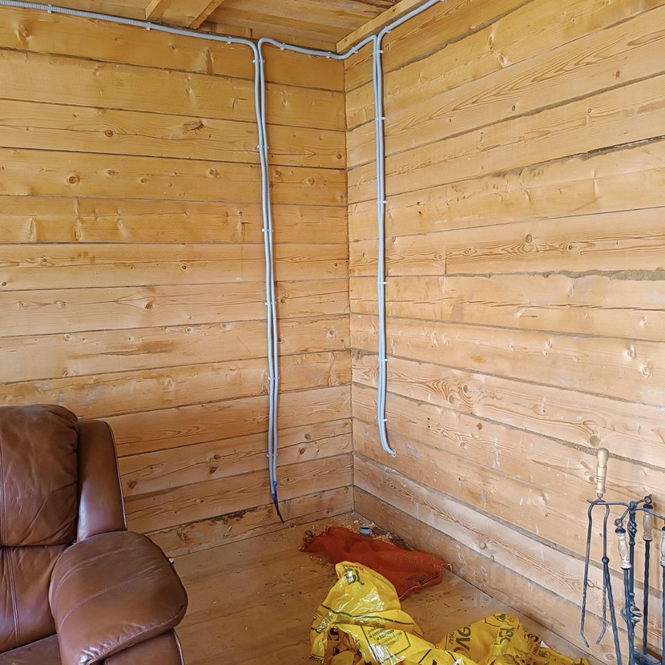 В доме есть все коммуникации. Сделана скважина. Подводится магистральный газ. Есть электричество 15 Вт