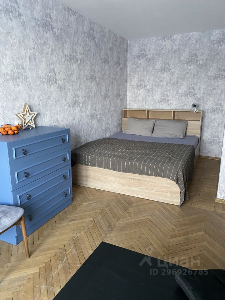 Имеется большая двуспальная кровать, один нераскладной диван, встроенный шкаф в коридоре.