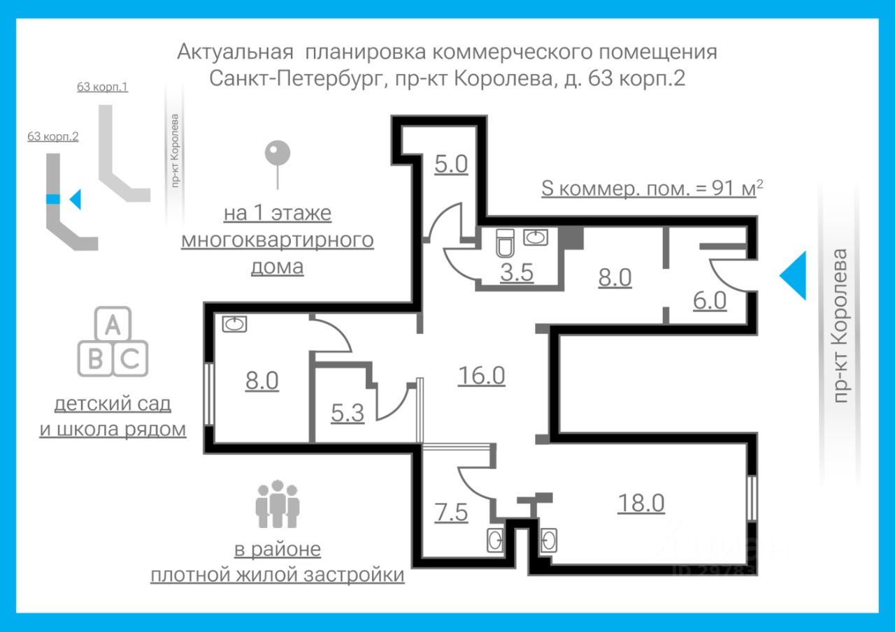 Вход в помещение со двора, напротив детской площадки и отличной парковки. В этом же доме находится медицинский центр ПОЛИС, частный детский сад и школа раннего развития.