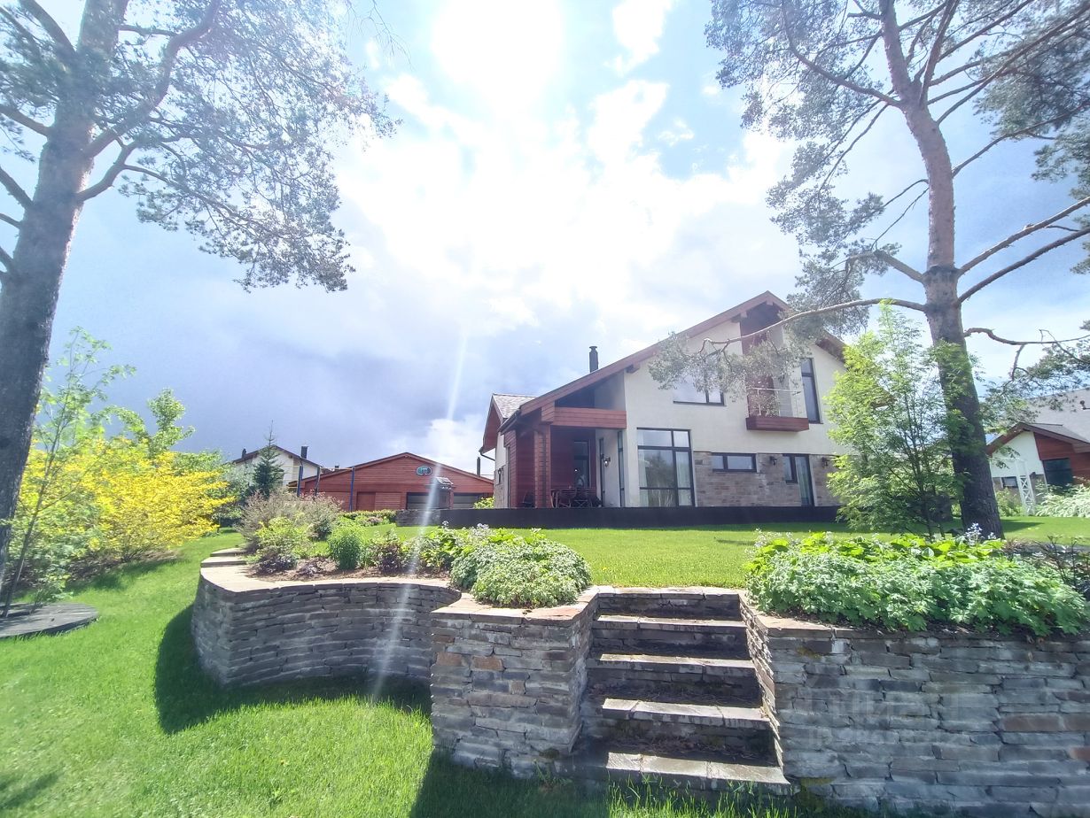 Двухэтажный загородный дом, площадью 219 кв. м., располагается на 12 сотках и полностью готов к проживанию. По всему периметру участка сделан ландшафтный дизайн. В доме организованы СПА зона с русской баней и купелью! Удобная и функциональная планировка внутренних помещений располагает к комфортному проживанию и отдыху. На первом этаже - кухня со встроенной мебелью полностью оборудована современной бытовой техникой, плавно переходящая в гостиную, с выходом на террасу с барбекю зоной. Кабинет и удобные хозяйственные помещения и гардеробные. На втором этаже три спальни, одна из которых мастер-спальня с выходом на балкон, со своей гардеробной комнатой и санузлом, а также две детские спальни, в одной из которых сделано ''Звёздное небо'' на потолке, выход на балкон. В доме 4-ре санъузла, душевые кабины и ванна.