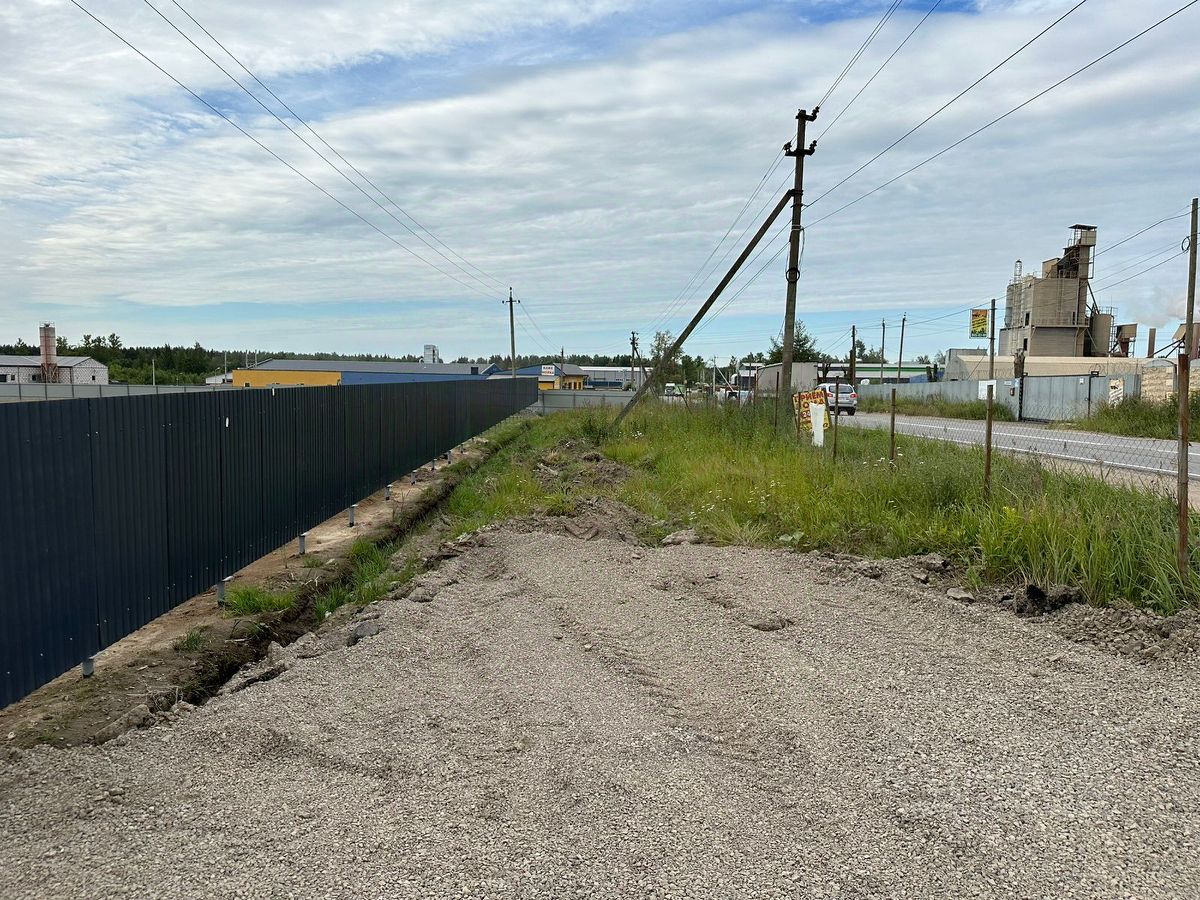 Участок ровный, отсыпан. Забор, ворота, въезд с главной дороги. Установлена бытовка 37 кв.м. для охраны, офиса, склада. Мусорная пухта 16 м3.