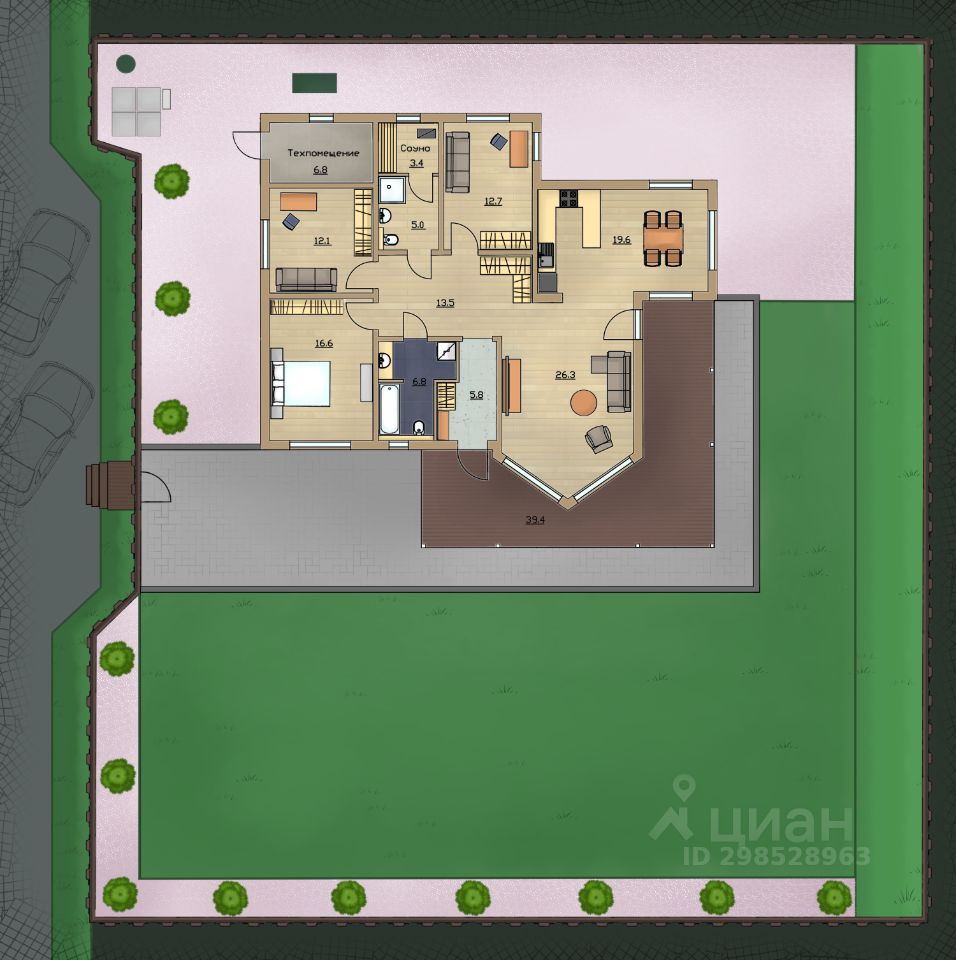 Ухоженный участок: - Огороженный участок 9 соток в личном пользовании. Можно свободно разместить детские развлечения, барбекю, шезлонги - Ландшафтный дизайн: плотный рулонный газон, высажены деревья и кусты. Уходом за озеленением занимается Управляющая компания. - Парковка на участке на 2 машины
