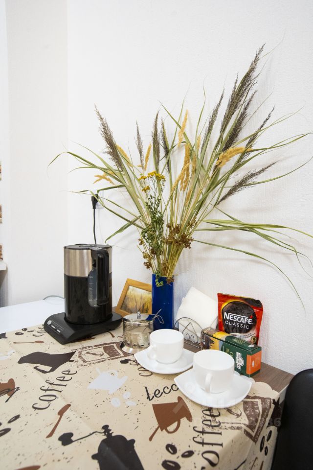 В квартире могут разместиться до трех человек: 2х спальный диван-кровать + доп. спальное место на раскладном кресле. В кухонной зоне стол со стульями, при входе большой шкаф. , Всегда: Постельное белье и полотенца. Мыло, шампунь, гель, , Техника: Smart TV, электроплита, холодильник, микроволновая печь, электрочайник, стиральная машинка, утюг с гладильной доской, сушилка для белья, фен.