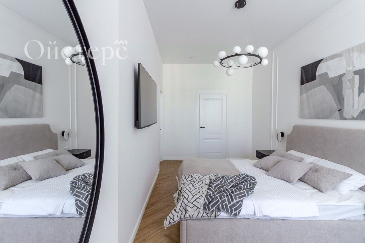 Выполнена грамотная планировка: в рамках идеального прямоугольника площадью 68 м² размещены кухня-гостиная (22 м²), две изолированные спальни (одна со своей гардеробной и системой хранения), смежный санузел, постирочная. Каждый квадратный метр жилплощади использован по максимуму.
