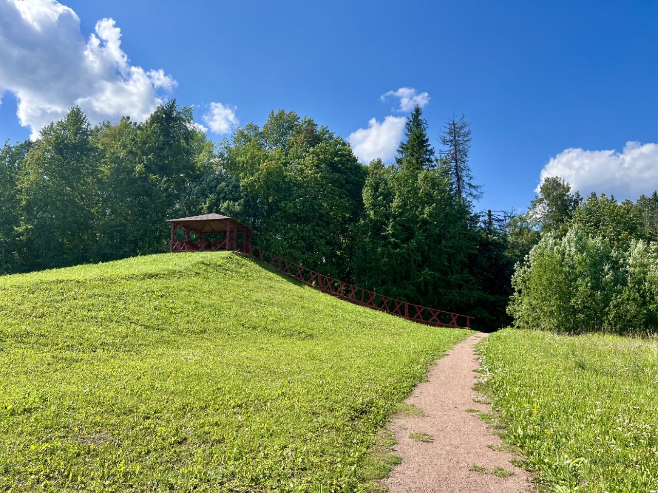 парк с прогулочными дорожками и скамейками,