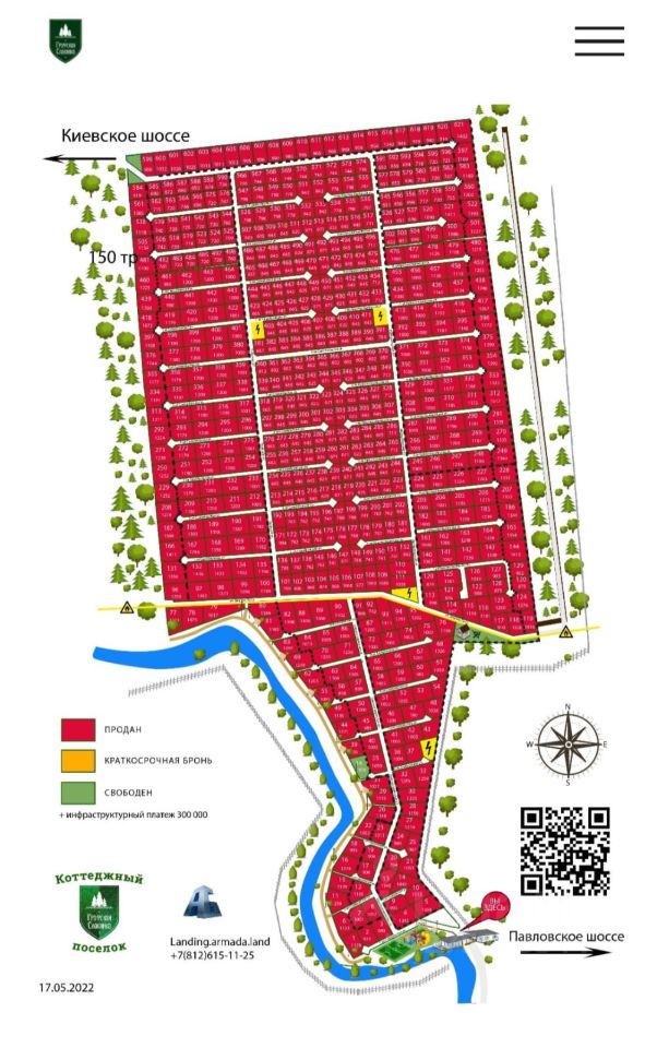 Коттеджный посёлок находится под круглосуточной охраной и насчитывает всего 621 участок .