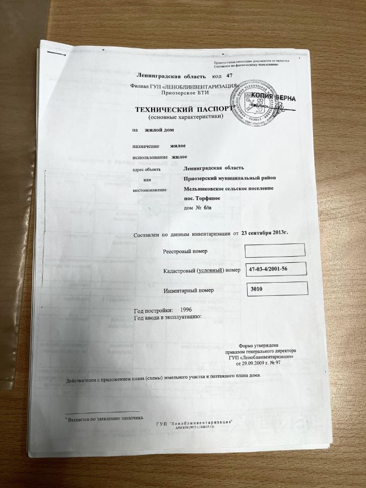 Дом Дедовский из бруса , но крепкий - жилой, две печи. на участке два колодца с питьевой водой . Банька. Возможна регистрация. От жд станции Отрадное ходит автобус до пос. Торфяное , рядом большое озеро Коммомольское . В поселке есть очень красивый Храм иконы Николая Чудотворца. Есть магазин . Центральные дороги - асфальт. От шоссе Приозерского до поселка - дорога грунтовка. Вокруг лесной массив - ягоды,грибы