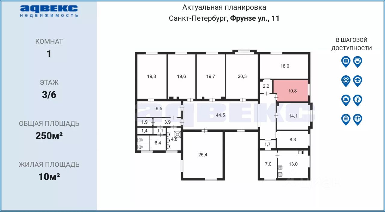 Предлагается к продаже отличная комната в коммунальной квартире на улице Фрунзе, дом 11 в Московском районе Санкт-Петербурга.