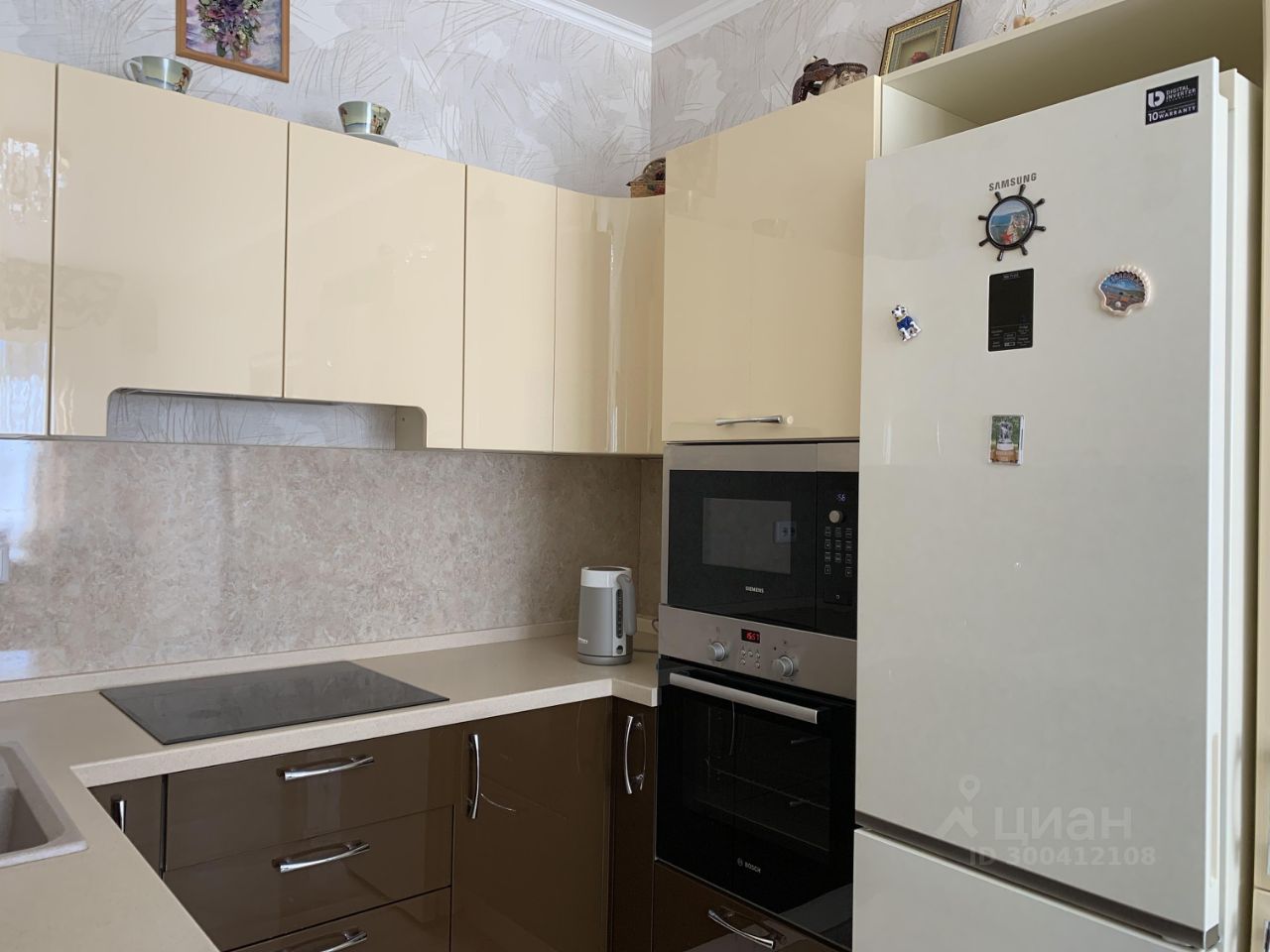 Кухня встроенная с посудомоечной машинкой, варочной поверхностью, духовым шкафом, двухкамерным холодильником, микроволновкой.