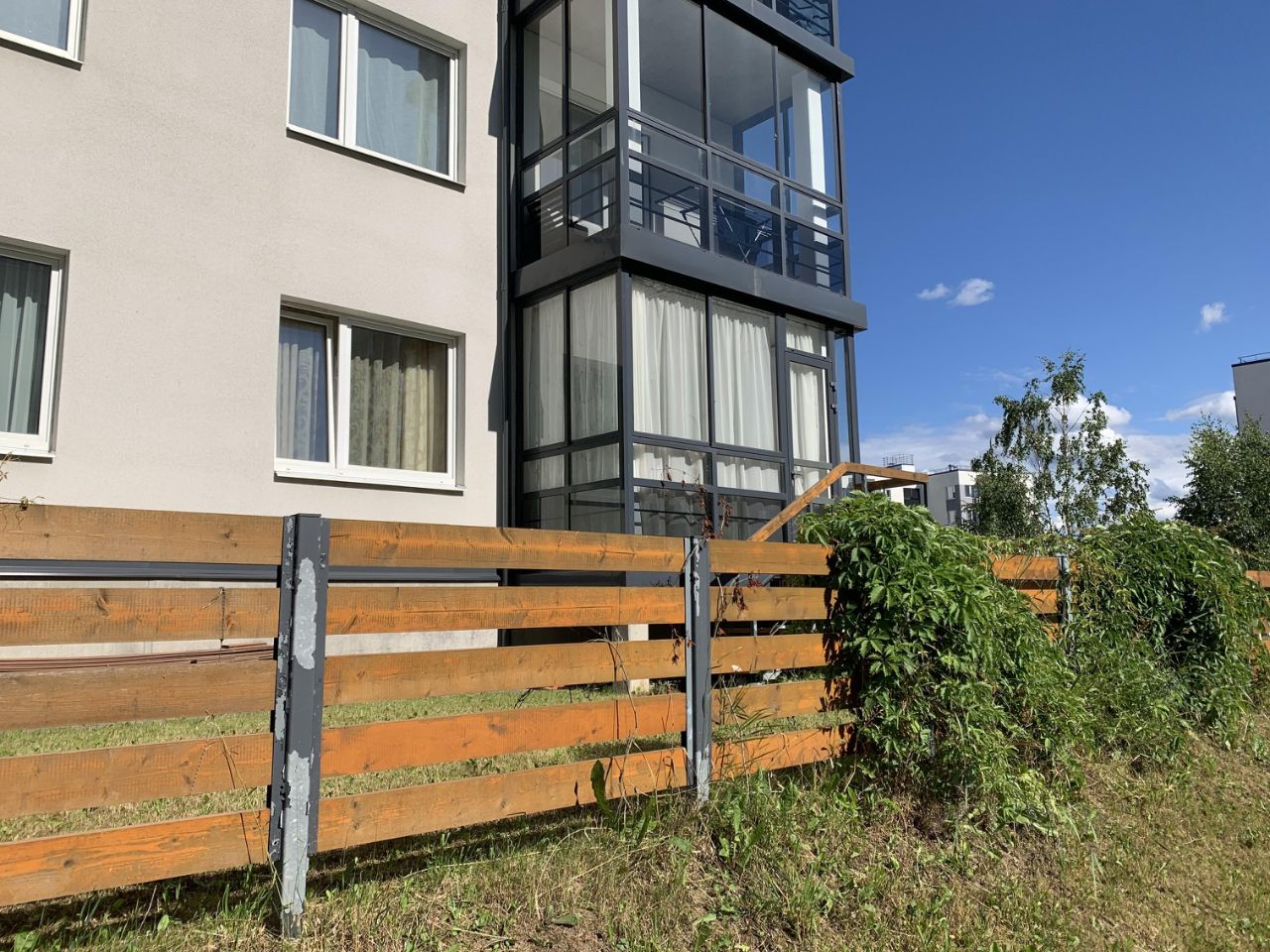 Квартира на первом этаже со своим огороженный участком. Выход на участок прямо с лоджии.