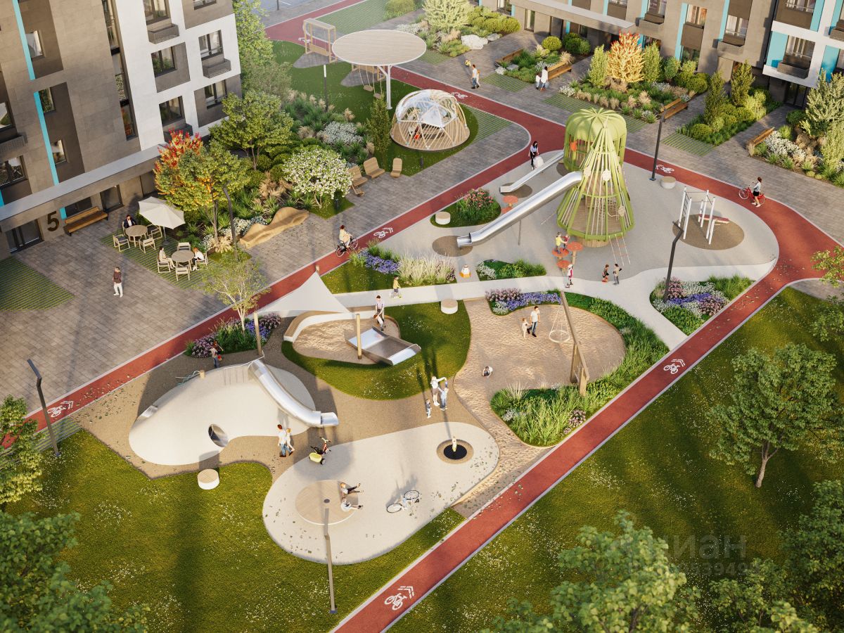 БЛАГОУСТРОЙСТВО Для детей предусмотрен комплекс для развлечений, игр и развития с безопасным покрытием.