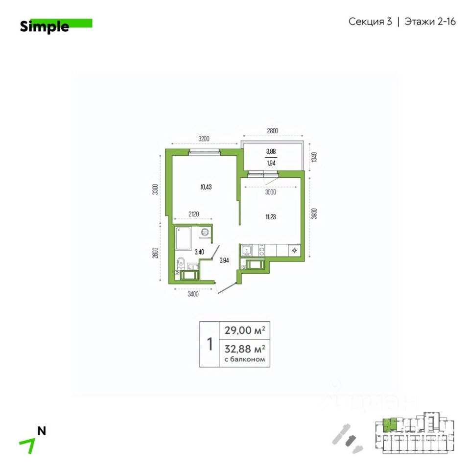 продам 1-к, проспект Новгородский, 2 корп. 36 961 600 ₽