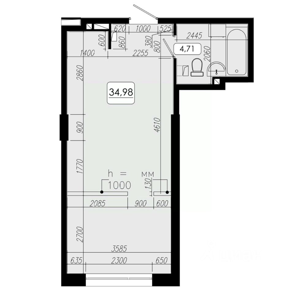 Общая площадь34,98 м2