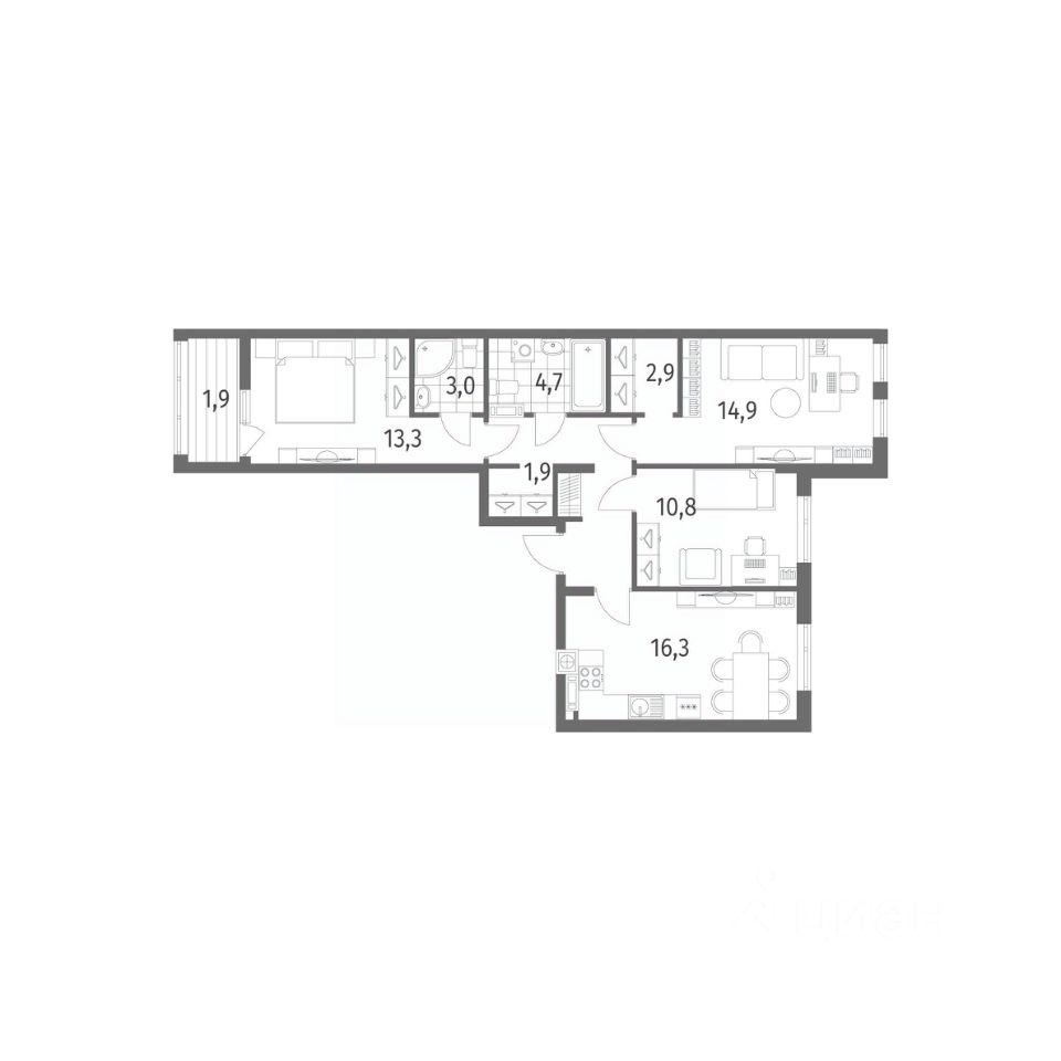 Продается квартира площадью 78.3 м² на 4 этаже 6 секции в Дом на Красной от компании ГК ''ТРЕСТ''. Площадь кухни 16.3 м². Жилой комплекс комфорт-класса ''Дом на Красной'' расположен в Центральном районе Калининграда на пересечении улиц Красная и Псковская. Жилой комплекс включает в себя два дома высотой 8 этажей. Срок сдачи намечен на 4 квартал 2026 года.