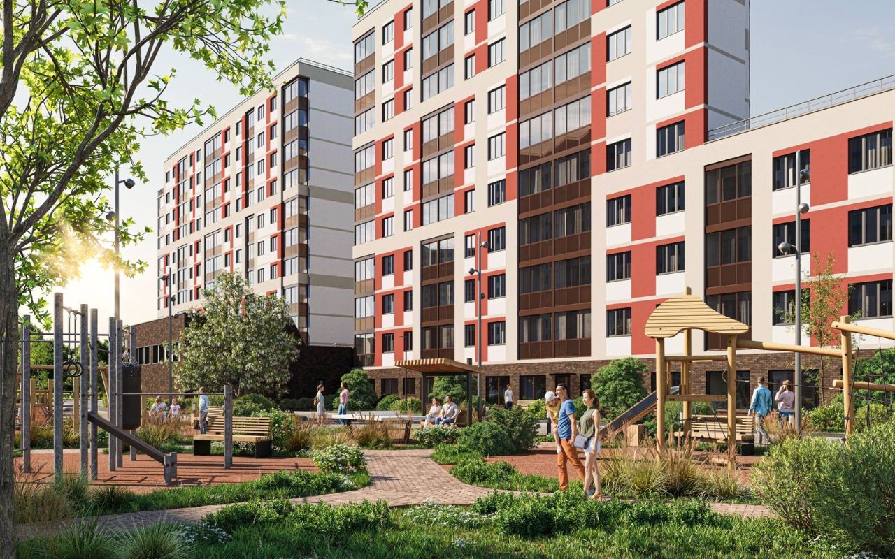 Инфраструктура и окружение: На территории комплекса расположен собственный физкультурно-оздоровительный комплекс с бассейном и детская площадка. На первых этажах разместятся коммерческие помещения — кафе, парикмахерские, магазины, — чтобы все необходимые услуги были в шаговой доступности.