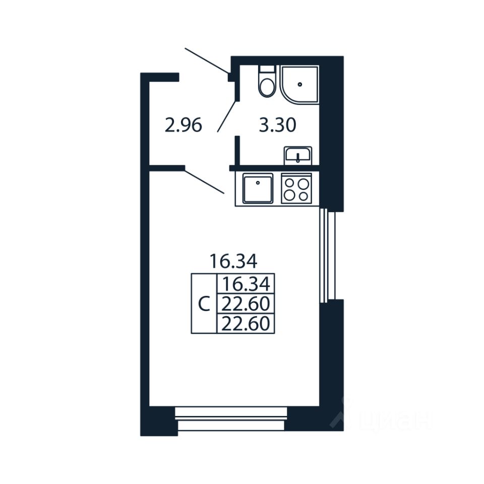 Общая площадь22,6 м2