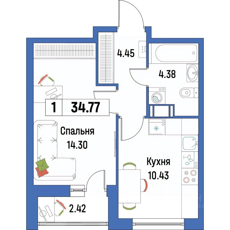 Общая площадь34,77 м2