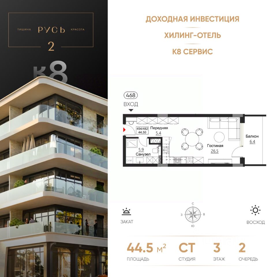 В 1 очереди Руси расположится гостиница 5*, поликлиника реабилитационно-восстановительной направленности. Здесь вы найдете идеальный синтез релакса и бережного оздоровления.