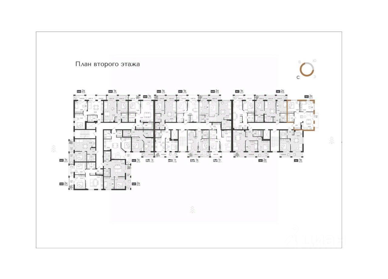Удачное планировочное решение позволяет организовать комфортное пространство из видовой спальни и просторной кухни-гостиной площадью 25,06 кв.м., выходящей на южную сторону света.