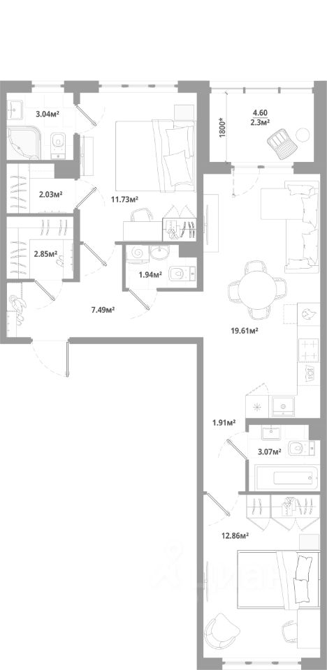 Продаётся 2-комнатная квартира 148, общей площадью 68.83 кв.м., на 2. Дом комфорт-класса, 12 этажей, в окружении леса и малоэтажной застройки. Проект с умным домом. Передача квартир в апреле 2026г.