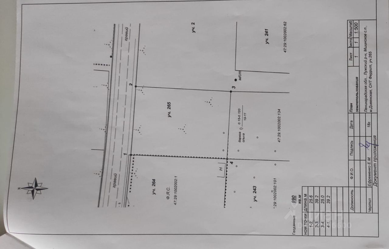 В продаже от собственника сухой, высокий, ровный участок 265 в СНТ Феррит. 10 соток по кадастру +1 от дороги (видно на схеме справа), которую не стали строить, по факту получается 11 соток. Сделано межевание (вынос границ участка). На участке спилены деревья, оставлены только частично. Садоводство спокойное, соседей на линии мало, председатель заинтересован в жизни СНТ. Рядом 2 спортплощадки: взрослая и детская. Есть пруды для купания. В пешей доступности(3 км.) ж/д станция Дивенская(Балтийский вокзал-конечная) . Есть подключение к центральному электричеству.