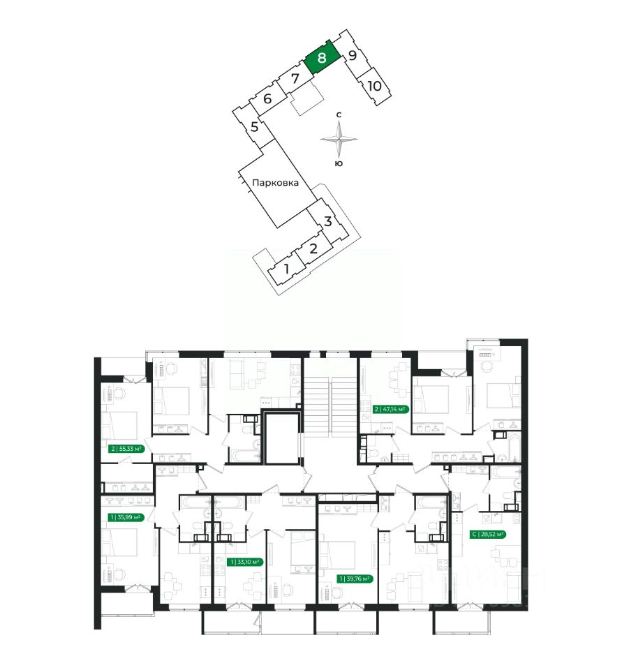 Напрямую продаётся квартира -студия 252 на 8 этаже (из 8) общей площадью 28,52 м2 в III очереди в жилом комплексе Сертолово Парк от застройщика ГК Алгоритм.
