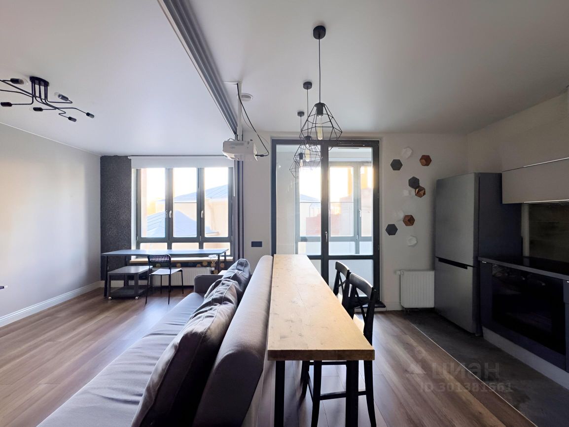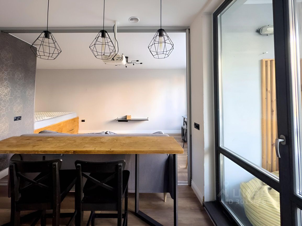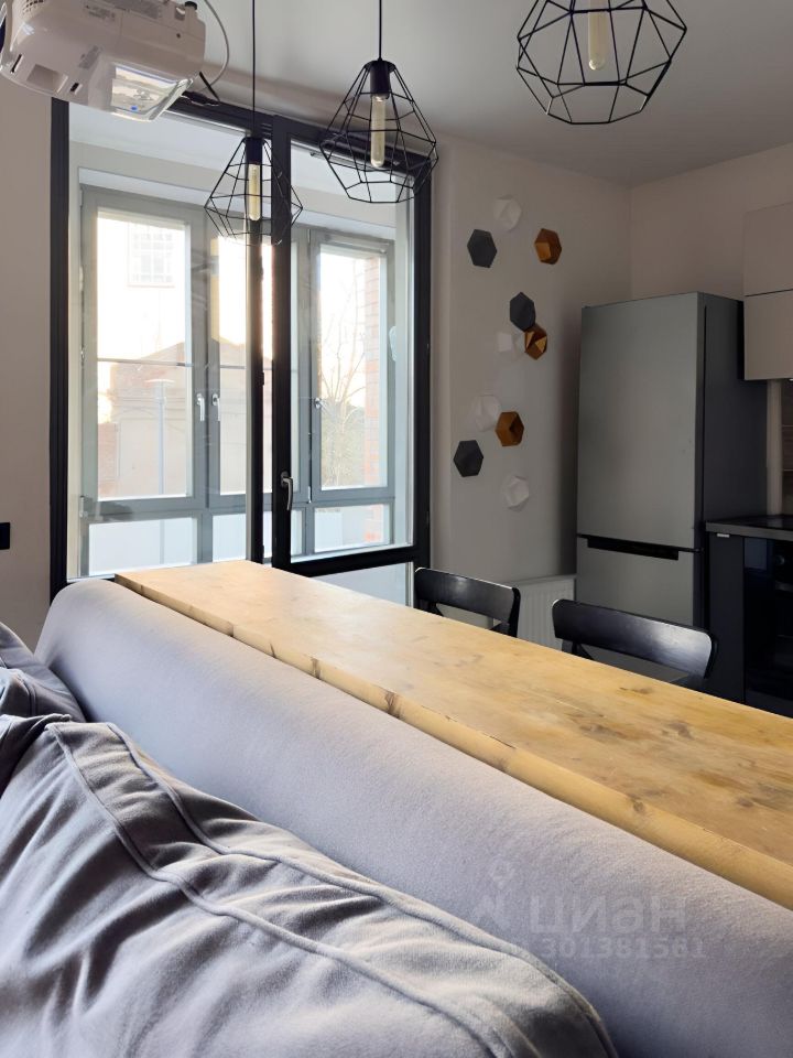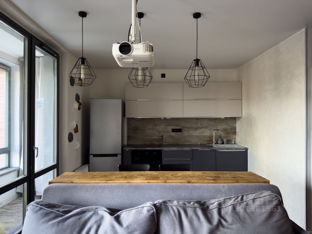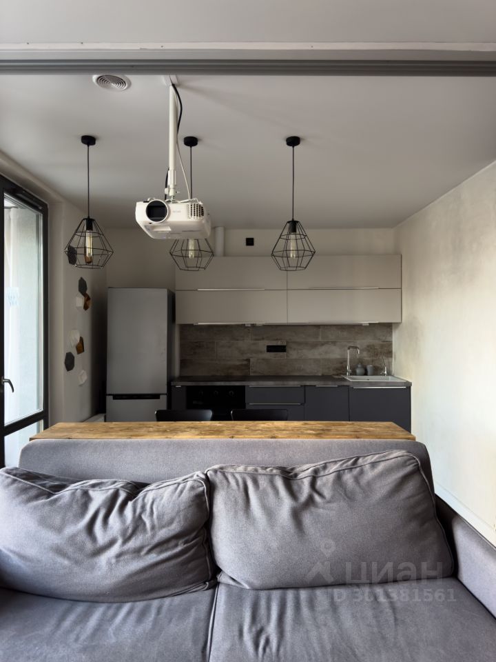 1. Небольшая прихожая с открытой системой хранения, зеркалом в пол и стеллажом для обуви, проведен интернет. 2. Совмещенный санузел с ванной, небольшой стиральной машиной, есть зеркало с хорошим светом и достаточно мест хранения. 3. Кухня с полноценным кухонным гарнитуром, установлен духовой шкаф и посудомоечная машина 45 см, холодильник, варочная панель и вытяжка. Функцию стола несет деревянная барная стойка со стульями, над которой висит проектор Epson. 4. Уютная лоджия с пуфиком и оборудованной нишей для хранения, окна выходят в тихий двор! 5. Гостиная комната с комфортным диваном и пустой стеной для проектора, пространство зонировано на рабочую зону и зону спальни в нише, да это такая высокая кровать, внизу спрятаны места хранения.