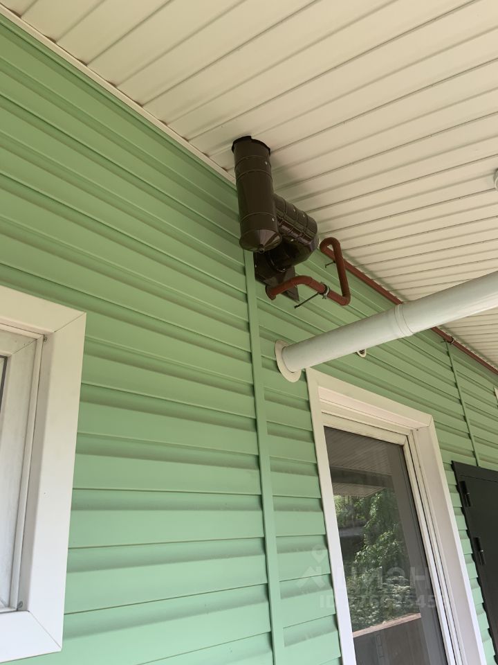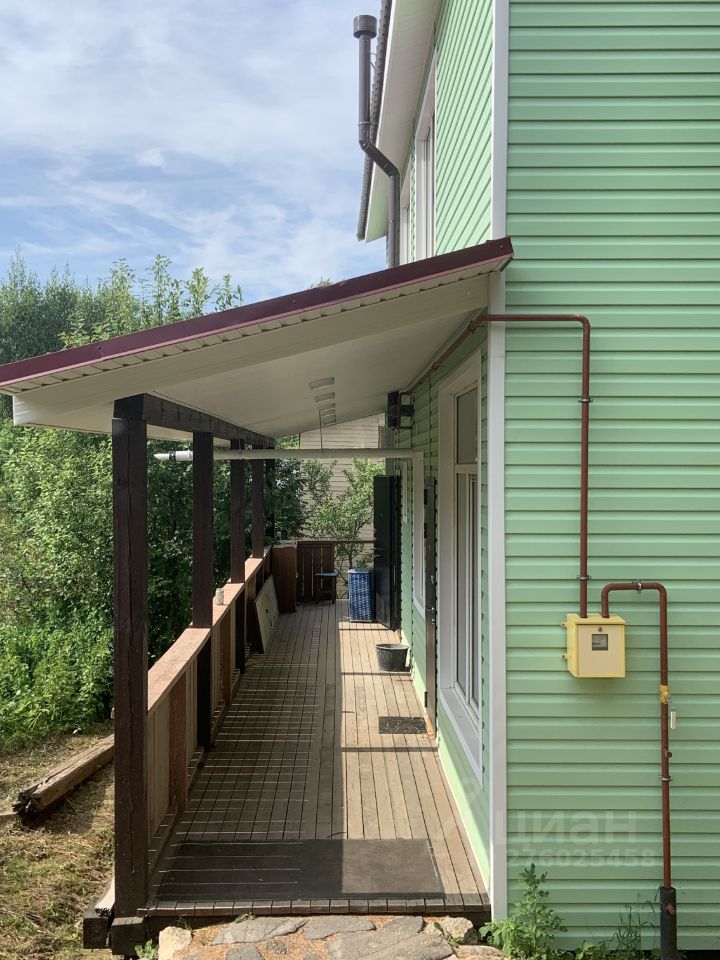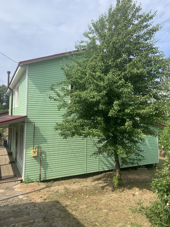 Дом каркасный, обшит сайдингом, крыша - металлочерепица, фундамент свайный. Также на участке есть двухэтажная хозяйственная постройка. При необходимости в неё можно завести газ, техническая возможность предусмотрена.